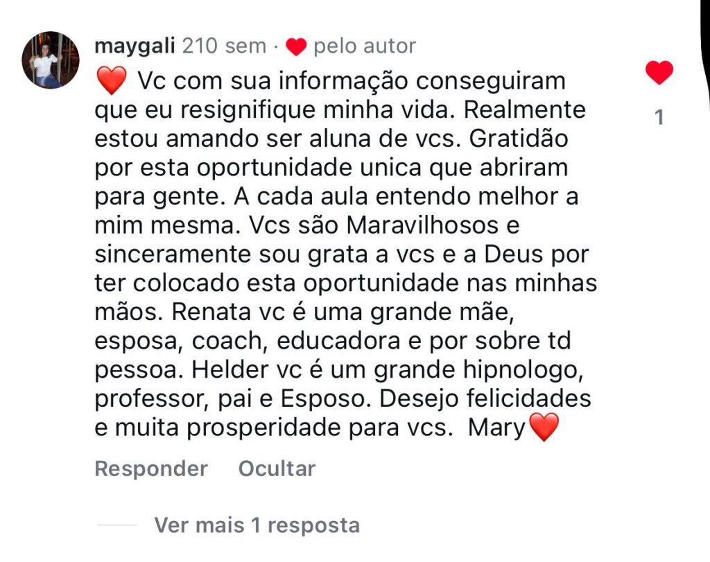 Em um ambiente de total confiança e acolhimento, utilizaremos abordagens que acessam as camadas mais profundas da sua mente. Você aprenderá a ressignificar experiências, dissolver padrões limitantes e ativar seus recursos internos para criar a realidade que você deseja, com mais liberdade e felicidade.